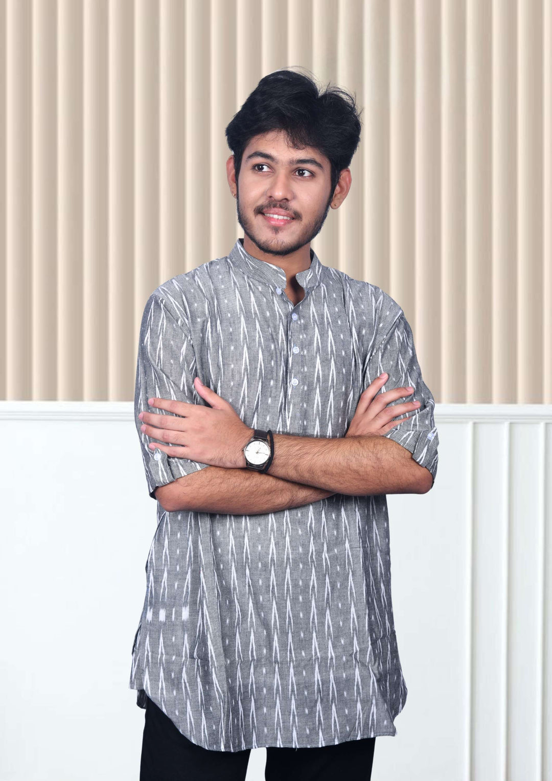 Sambalpuri Handloom Cotton Grey Short Kurta for Men