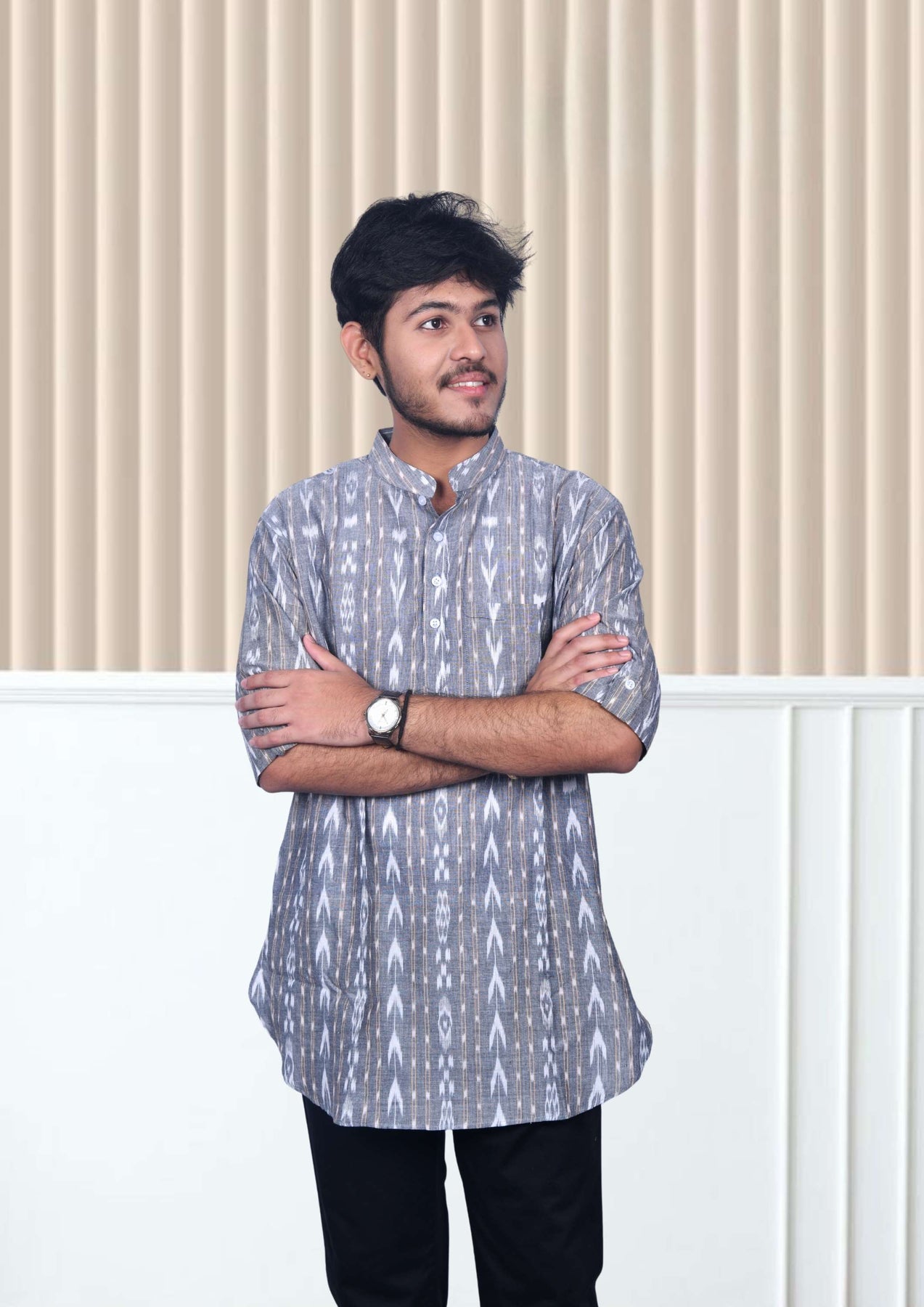 Sambalpuri Handloom Cotton Grey Short Kurta for Men