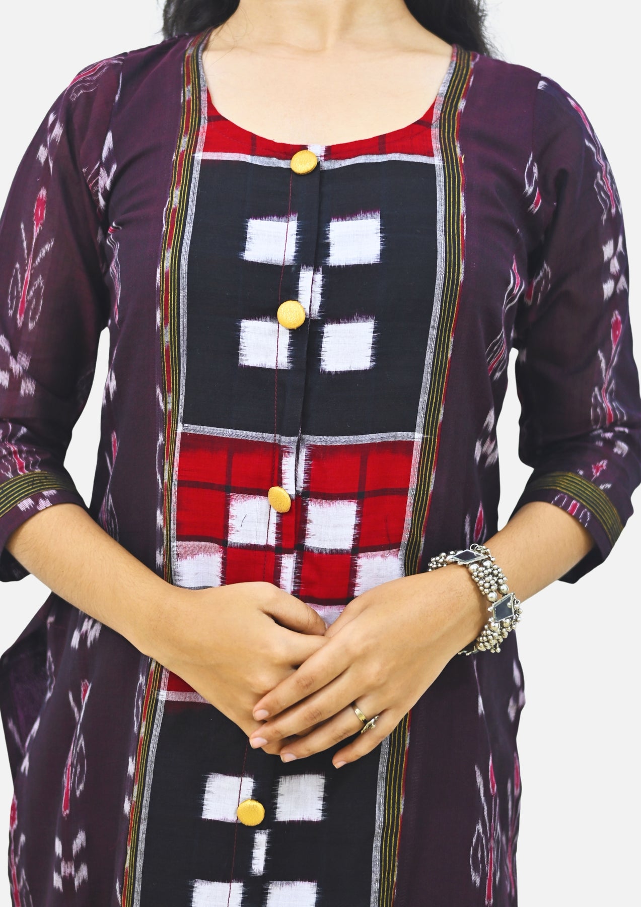 Straight Kurti - Pasapalli Motif with Maroon Base