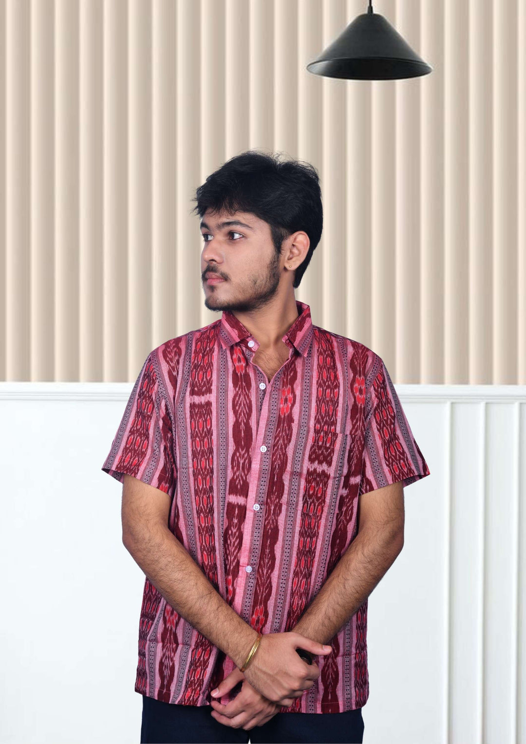 Sambalpuri Handloom Cotton Pink Half-sleeve Shirt for Men