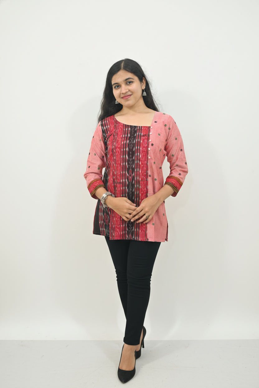 Sambalpuri Handloom Curly Design Tunic Top in Pink